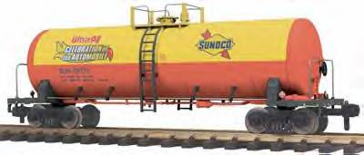 The freight cars in the MTH line-up for the greater part sit comfortably with either the steam era or current day short line equipment. There are obvious exceptions such as those carrying recent "merged" roadnames and with the tanker being a post war design. The helicopter car, if you like the idea of one, seems to be carrying a reduced scale toy design from the 1970's. Here are some images of standard production tankers, boxcars, flatcars, reefers, hoppers, caboose