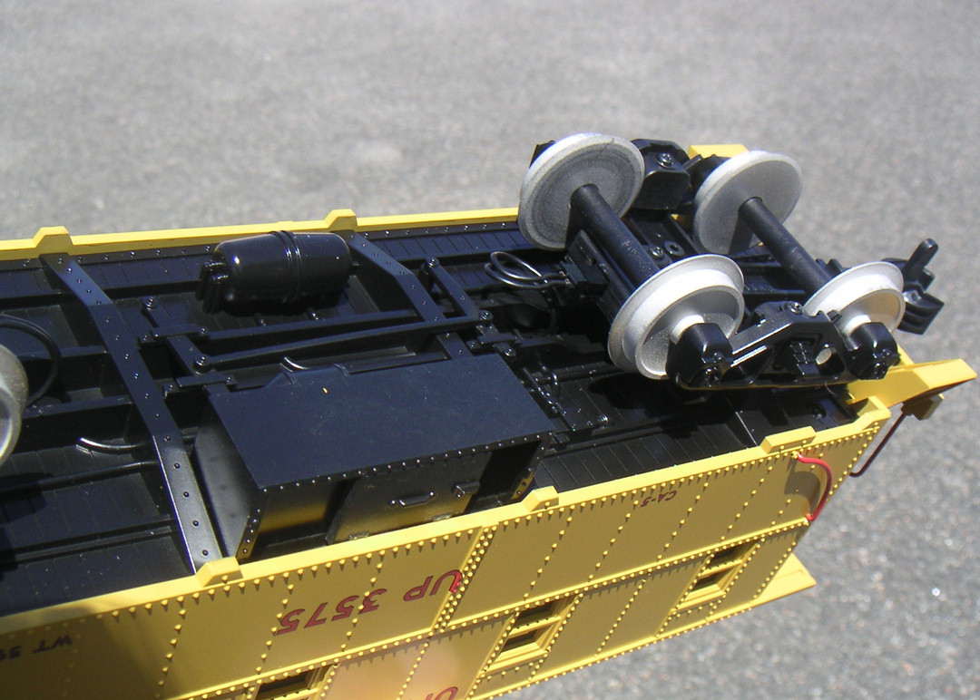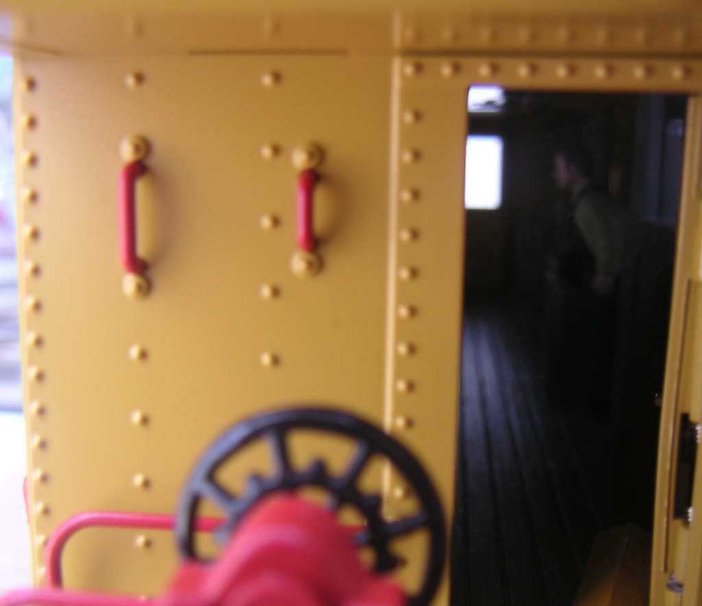 The caboose has a full interior, two crew members and lighting. The doors open but are sprung to close, the toolbox door slides (no tools provided) even the flooring and underside of the roof is detailed. I apologise for the poor depth of field and lighting in the interior shot, it simply does not do the model justice, the caboose really is one of the best models in the MTH product line.